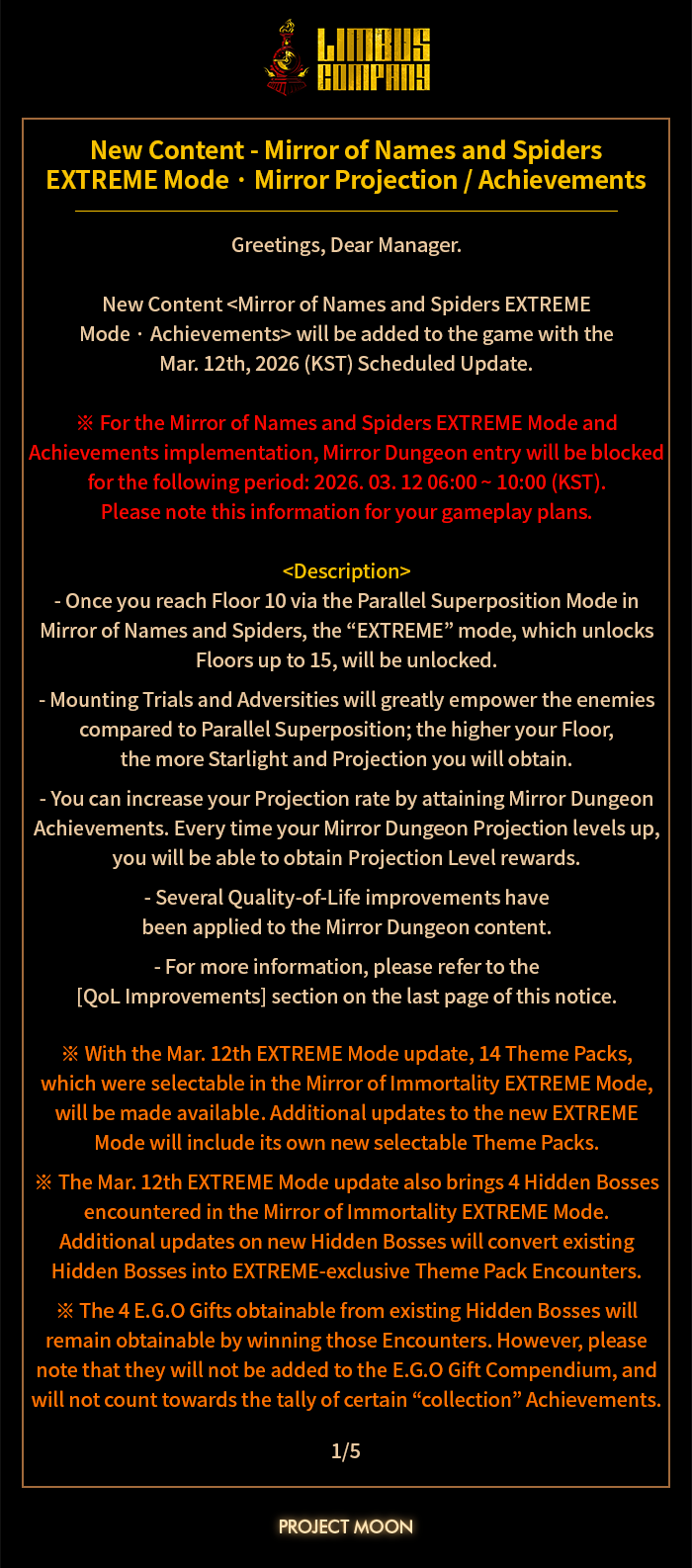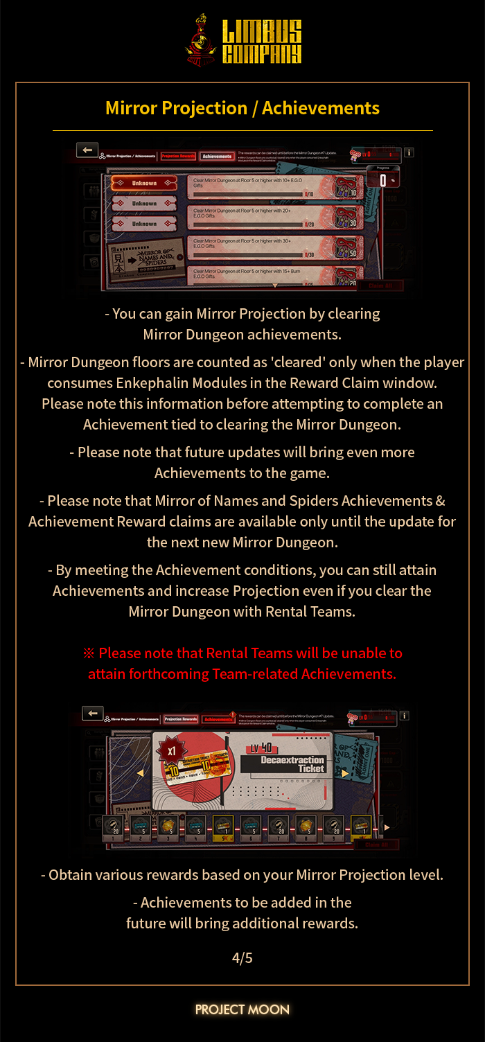 [Limbus News] Mirror of Names and Spiders EXTREME Mode · Mirror Projection / Achievements