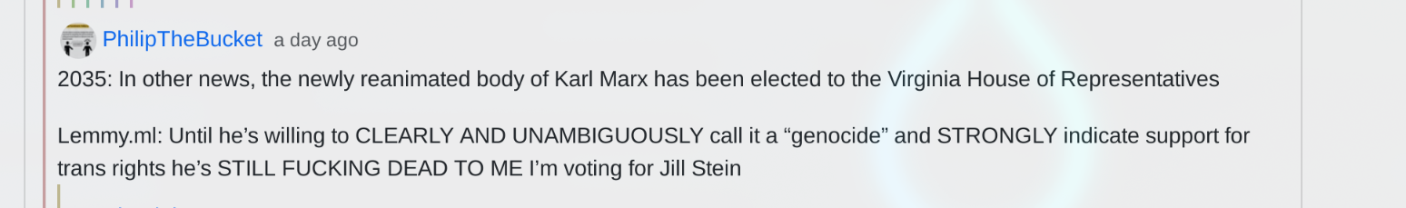 Which I believe is harmful to the Lemmy-verse's overall growth and outside reputation. I have seen it come up before on Reddit threads (and other testimonials from people who came back and tried it again) that "They tried Lemmy but it was a bunch of tankies and went back to Reddit"