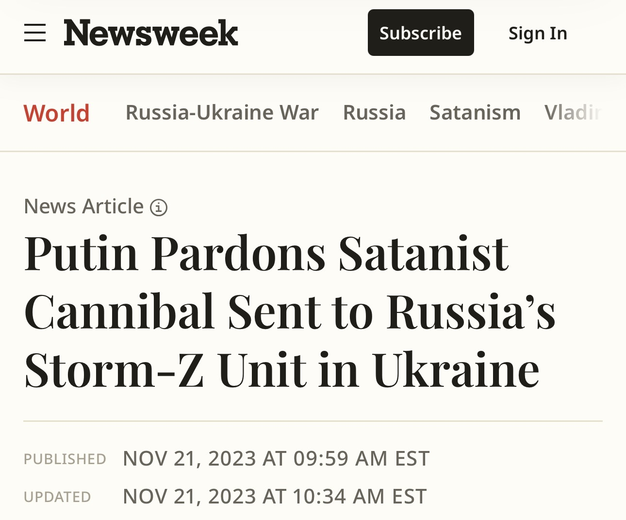 Nikolai Ogolobyak, one of the convicted participants in the 2008 Yaroslavl ritual murder case, was later reported by multiple Russian and regional sources to have been released from prison after serving part of his sentence. According to those reports, his release was granted under a wartime pardon program in which certain prisoners were offered clemency in exchange for military service. He subsequently took part in combat operations on the Russian side during the war in Ukraine. As with many such cases, details vary by source, but the claim of pardon in connection with wartime service has been widely circulated in post-release reporting.