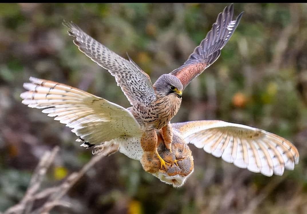 Kestrels are so feisty! Kestrel fighting a Barn Owl