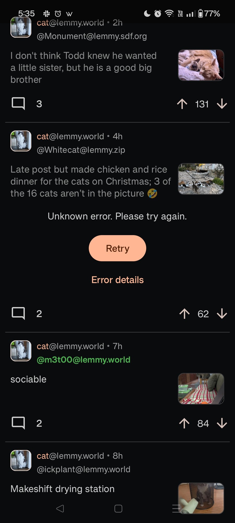 In this first one, I tapped on the post thumbnail to expand it. Not shown: The first time I expand the post it'll show the image, and then replace it with the error after a fraction of a second.