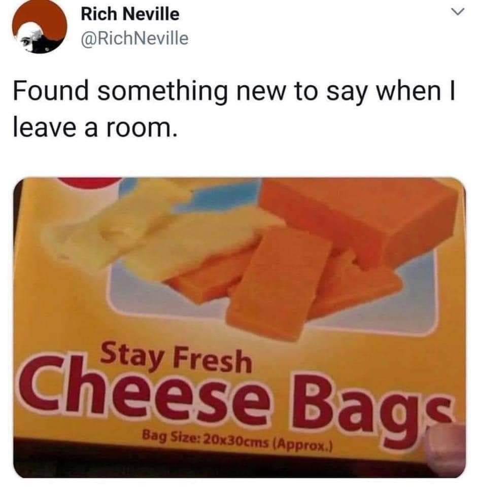 Can you say "what's up, cheese bags?"