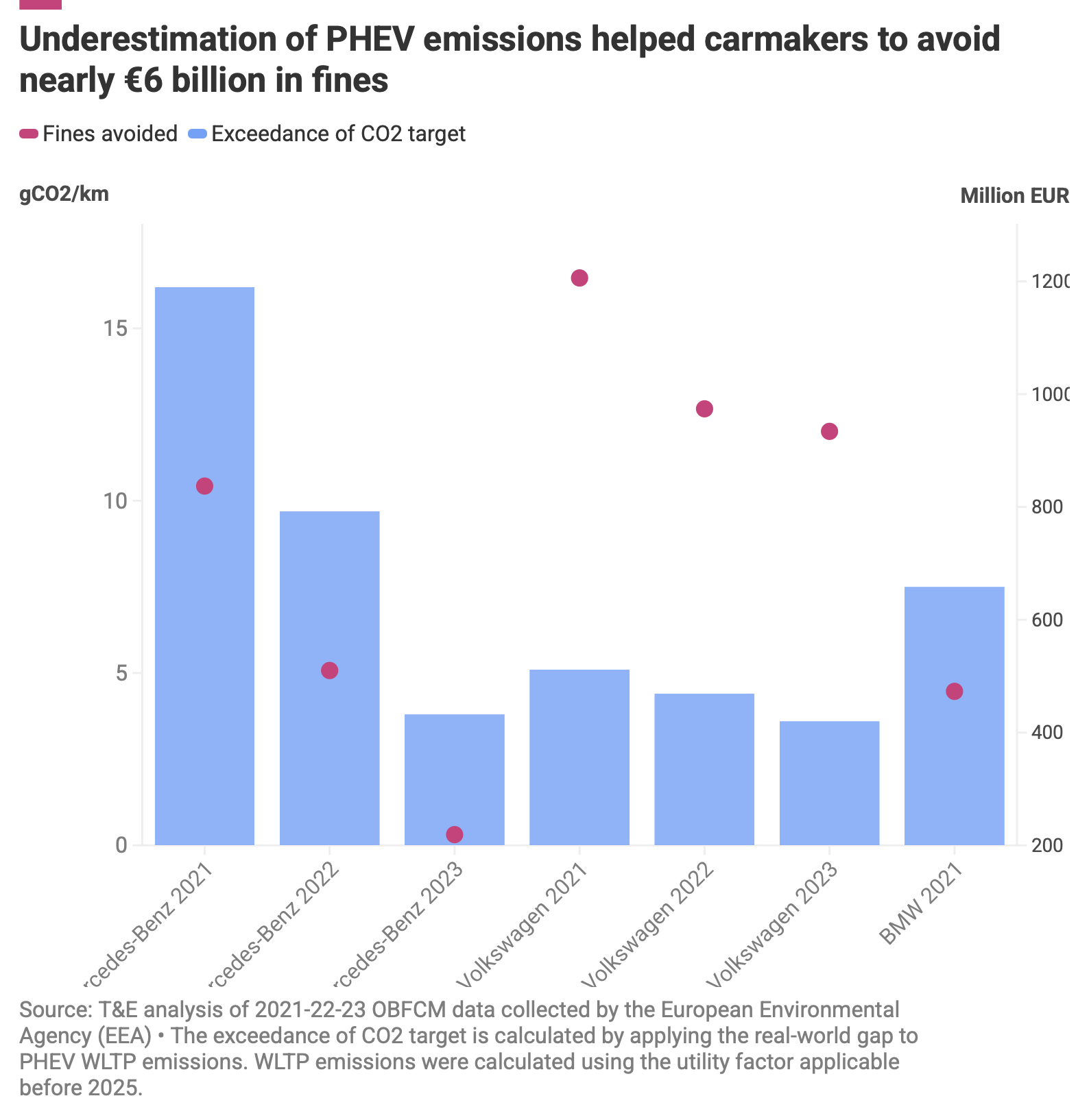 The [fuel consumption and CO2 emissions] gap is mostly caused by flawed assumptions on the share of electric driving mode (the ‘utility factor’, UF) which leads to a drastic underestimate of official PHEV emissions. The UF overestimated the electric driving share, assuming 84% over 2021-2023, whereas real-world data shows this to be just 27%.