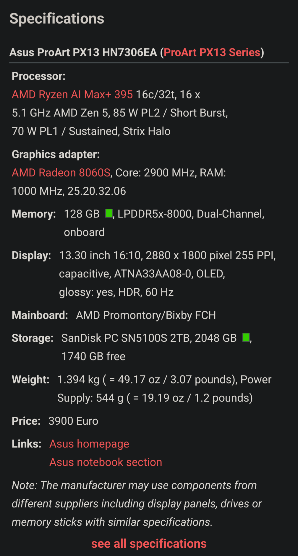 It also says 3900 euro under the specifications section, so which is it?