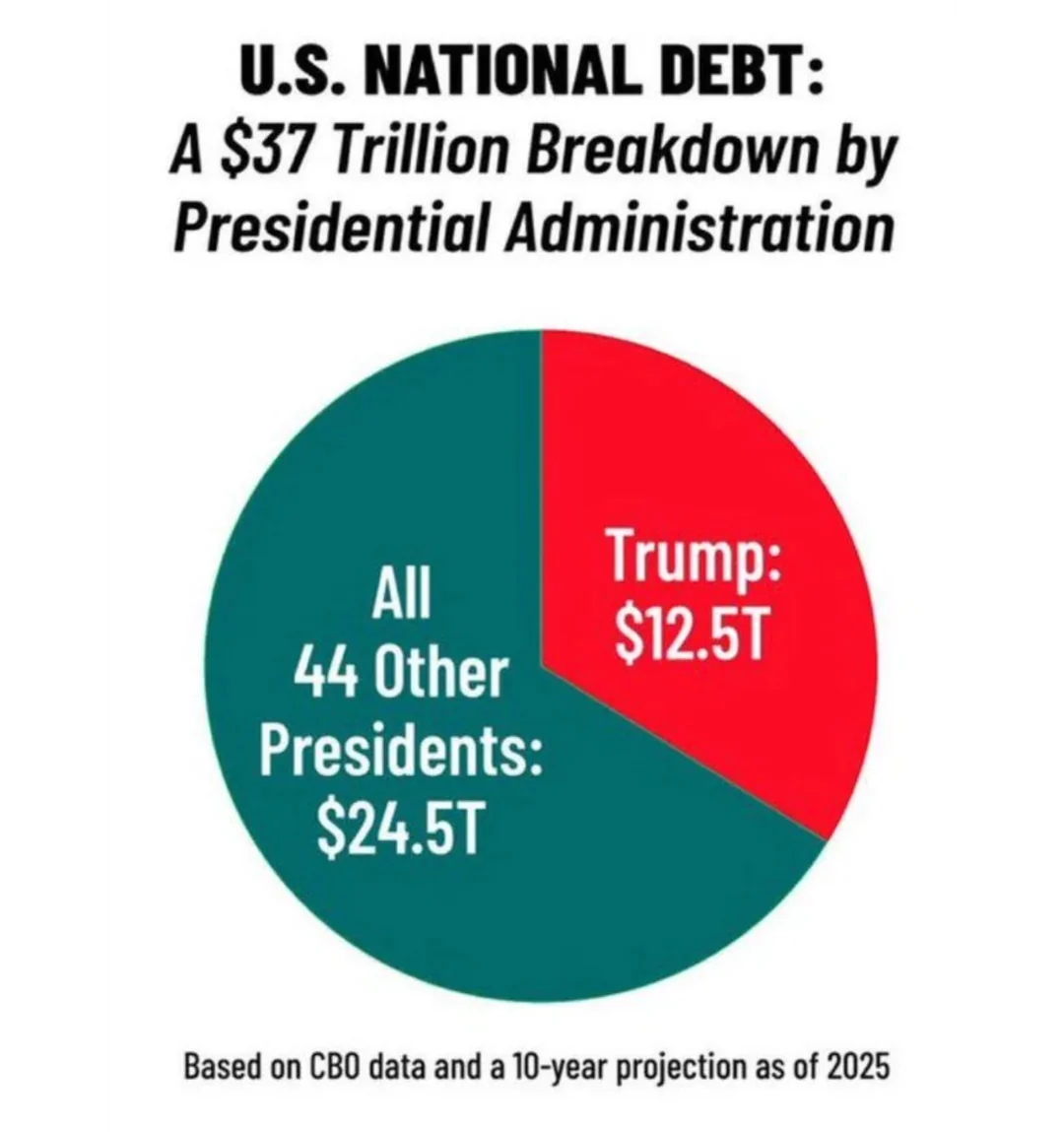 Edit: this graph is probably outdated since now the National debt is soon to reach 39T.. so add another 2 T to the pedophiles pie there. Fucking moron.