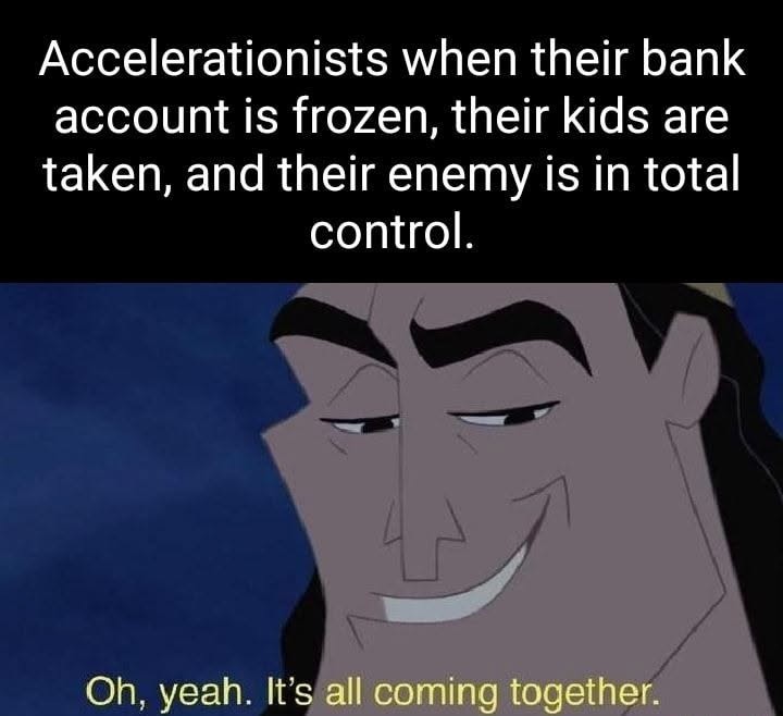 Me, after becoming an accelerationist ca. November 2024. Conservatives decided to sink the ship. Let's see how fast this baby can sink