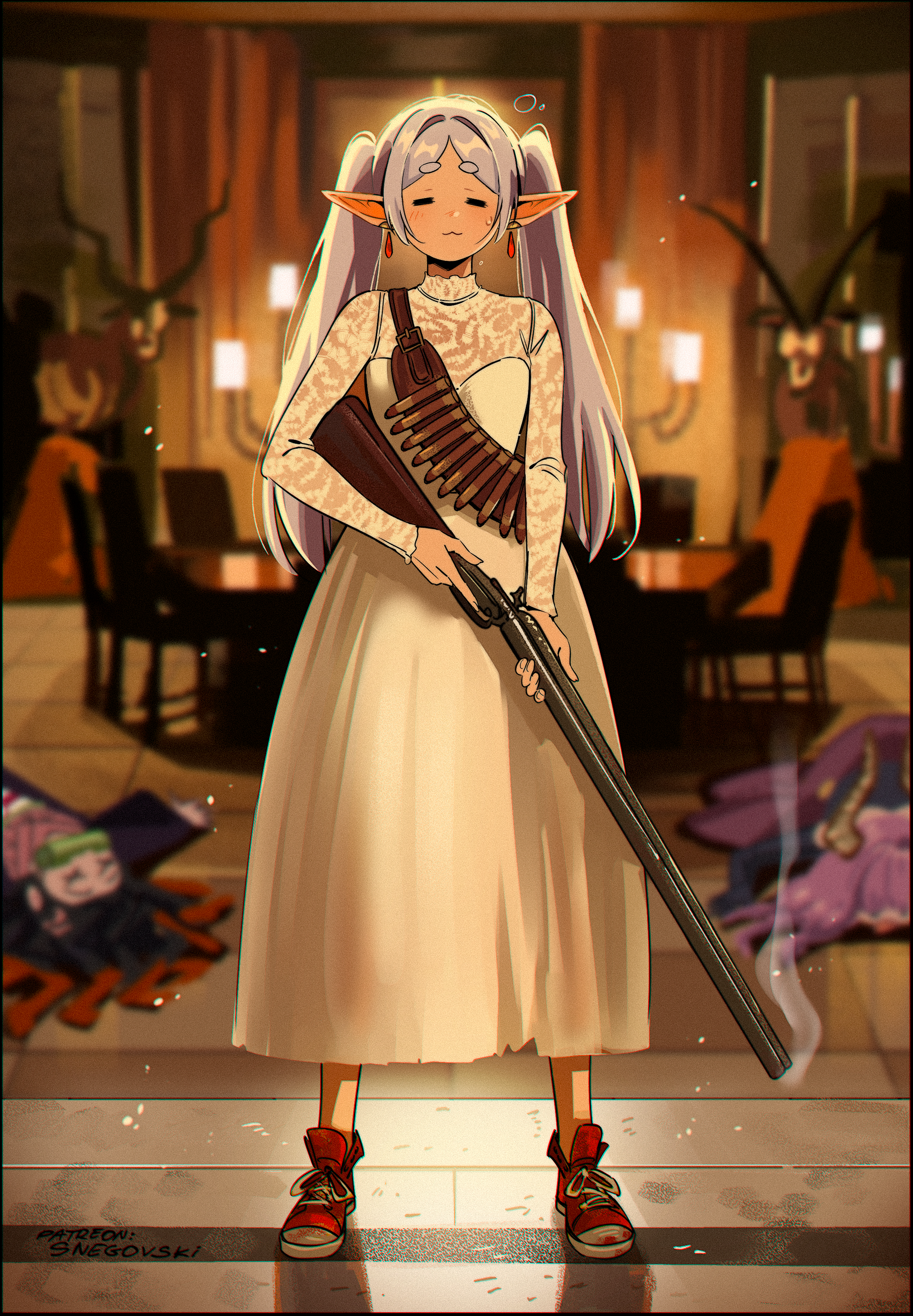 The maid atop the tread is lifting up some rounds for it, and the thing in front of the turret is the launcher. (Though it's not mounted)