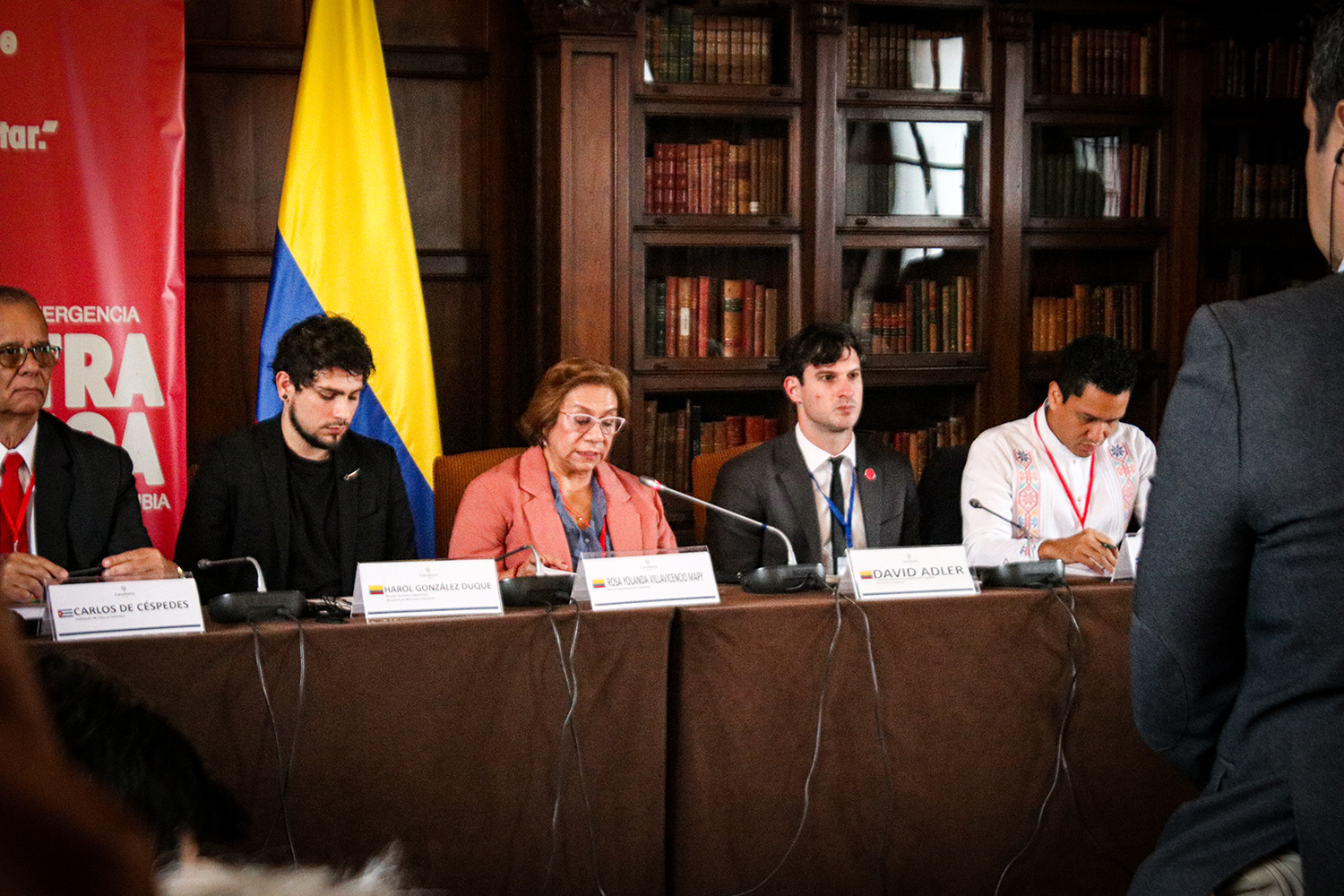 ^From Left to Right: Cuban Ambassador to Colombia Carlos de Céspedes, Harol González Duque Director de la Academia Diplomática, Colombia Minister of Foreign Affairs Rosa Yolanda Villavicencio Mapy, David Adler Photo: Seth Garben